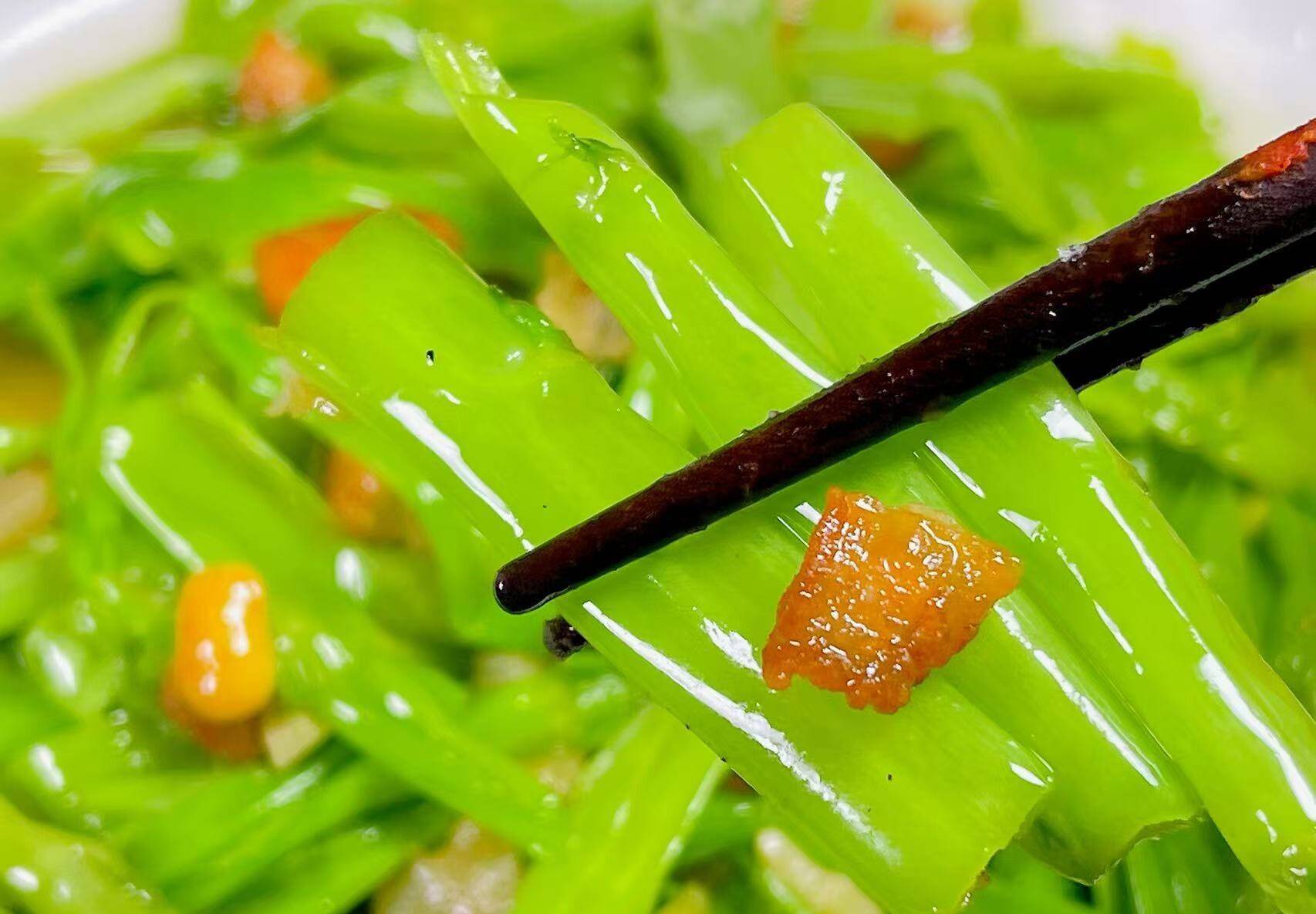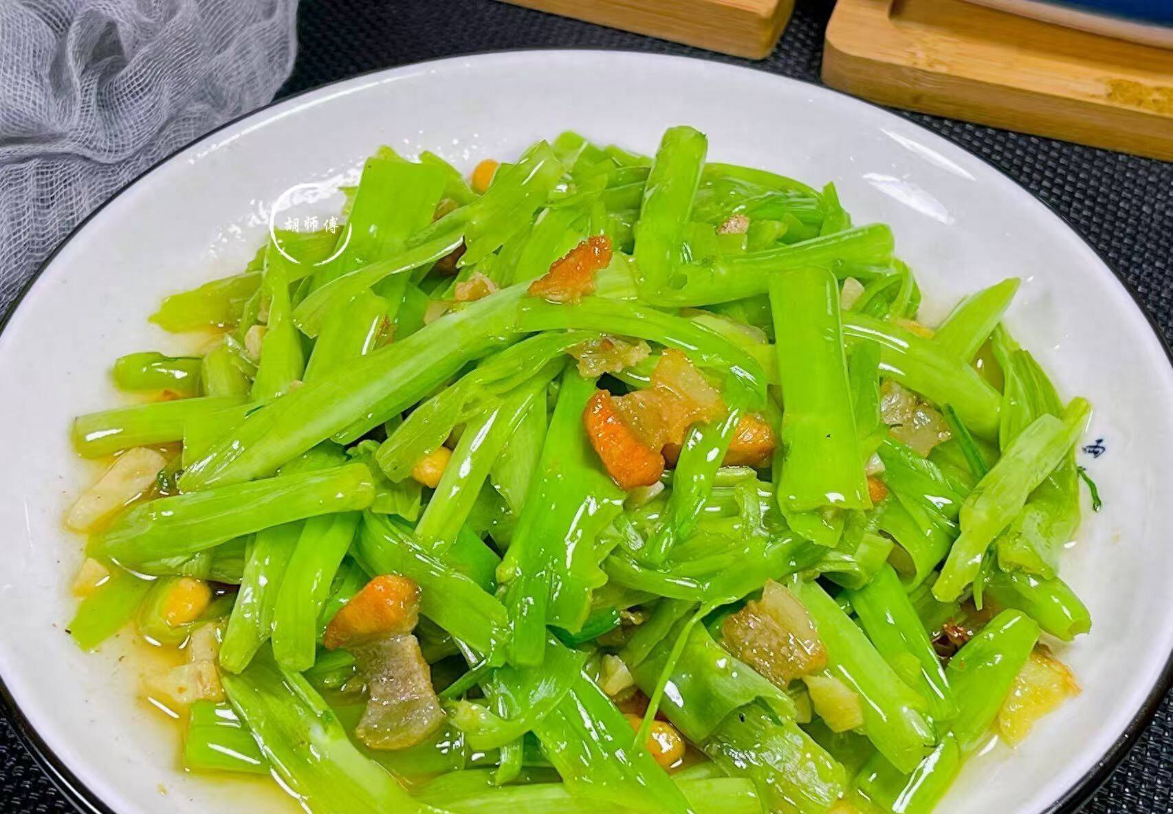 而通菜的茎是最好吃的,每次去菜场买菜,我都会买茎比较粗的通菜,然后把通菜的茎用蒜末、猪油渣随手一炒,营养又解馋,在春天,只要有这1盘菜,我就能吃一大碗米饭呢!接下来我就把猪油渣炒通菜茎的详细做法分享给大家。